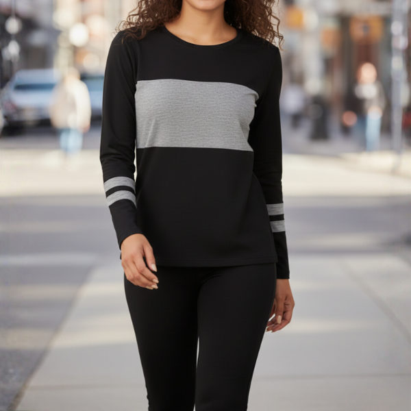 Kényelmes és stílusos kétszínű szett, amely tökéletes választás őszi-téli mindennapi viselethez.