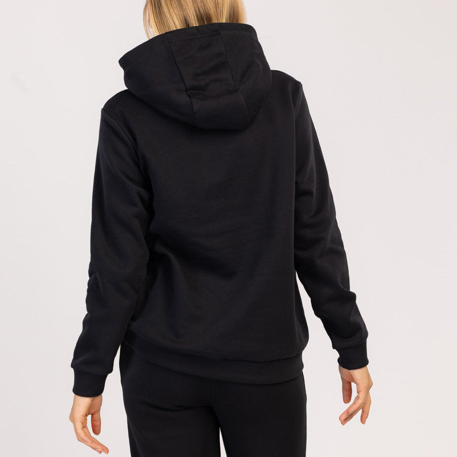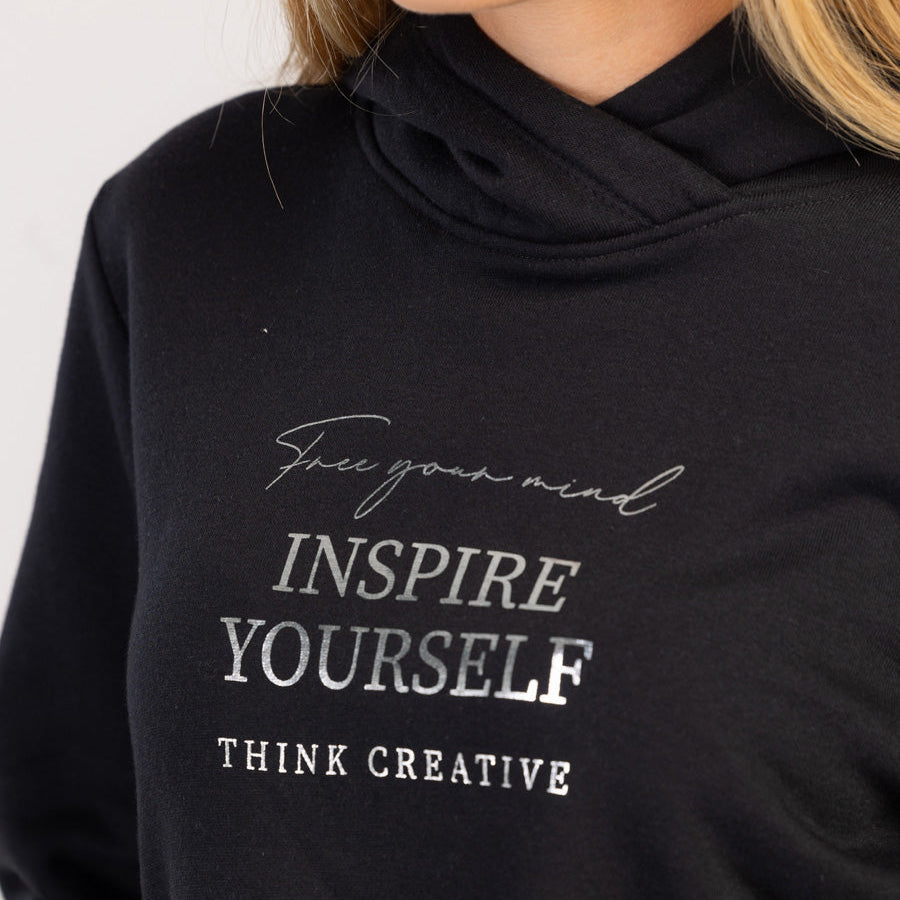 Ez a divatos szlogennel ellátott kapucnis pulóver tökéletes választás a hidegebb napokra és a pihentető pillanatokra. Puha pamutkeverékből készült, a belső része kellemesen szőrös, így minden viseléskor meleg és puha érzetet biztosít.